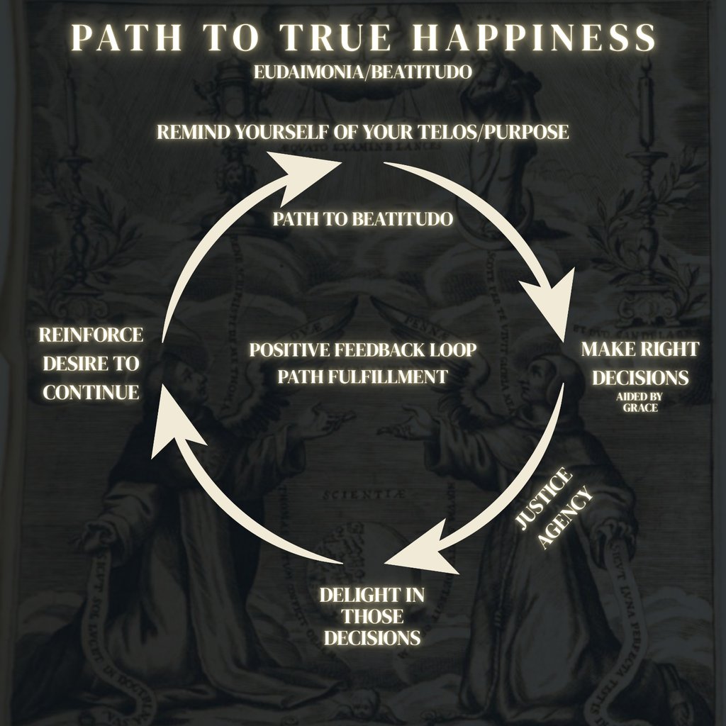 Now that I have given a primer on the immense impact that metaphysics has on humanity and human action as well as some practical tips to restore our agency, the solution to the Gen-Z crisis becomes a little bit clearer. What my generation desires is not more reels or tiktoks regardless of what older generations may report, but it is ultimately the same thing that all humanity was born for: Happiness (eudaimonia/Beatitudo), but as mentioned above, given that a human is a rational being with an intellect and will, we have to discover our specific paths to this happiness, and then make decisions that bring us closer to it. It is not very difficult to stray from the path through our own weakness and behavioral inconsistencies, but as long as we take the step to decide to seek that happiness, we will work to correct ourselves and continue on the path. When life is viewed from this perspective, every day, every moment even, is an opportunity to triumph. Every decision we make is no longer overwhelming in our instantaneous and short sighted society, but it is seen in the long-term and reinforces the joy felt from getting closer to our end.